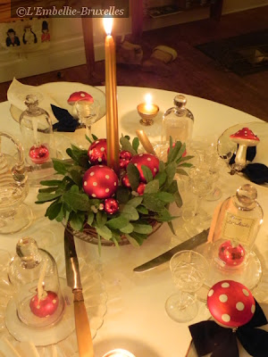 parent le centre de la table dans une couronne de gui